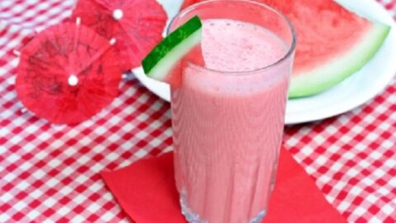 - نضع المكوّنات جميعها في إبريق الخلاط الكهربائي، ونشغله مدة دقيقتين حتّى تمتزج المواد، ثمّ نصب الخليط الناتج في أكواب التقديم، ونزينه بقطعٍ من البطيخ.