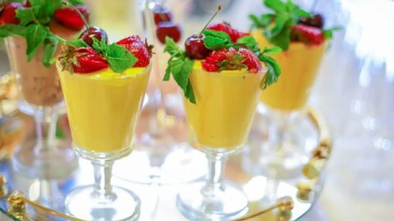 - تزيين كؤوس التقديم بشرائح المانجا، وتزيين أطرافها بالشوكولاتة.