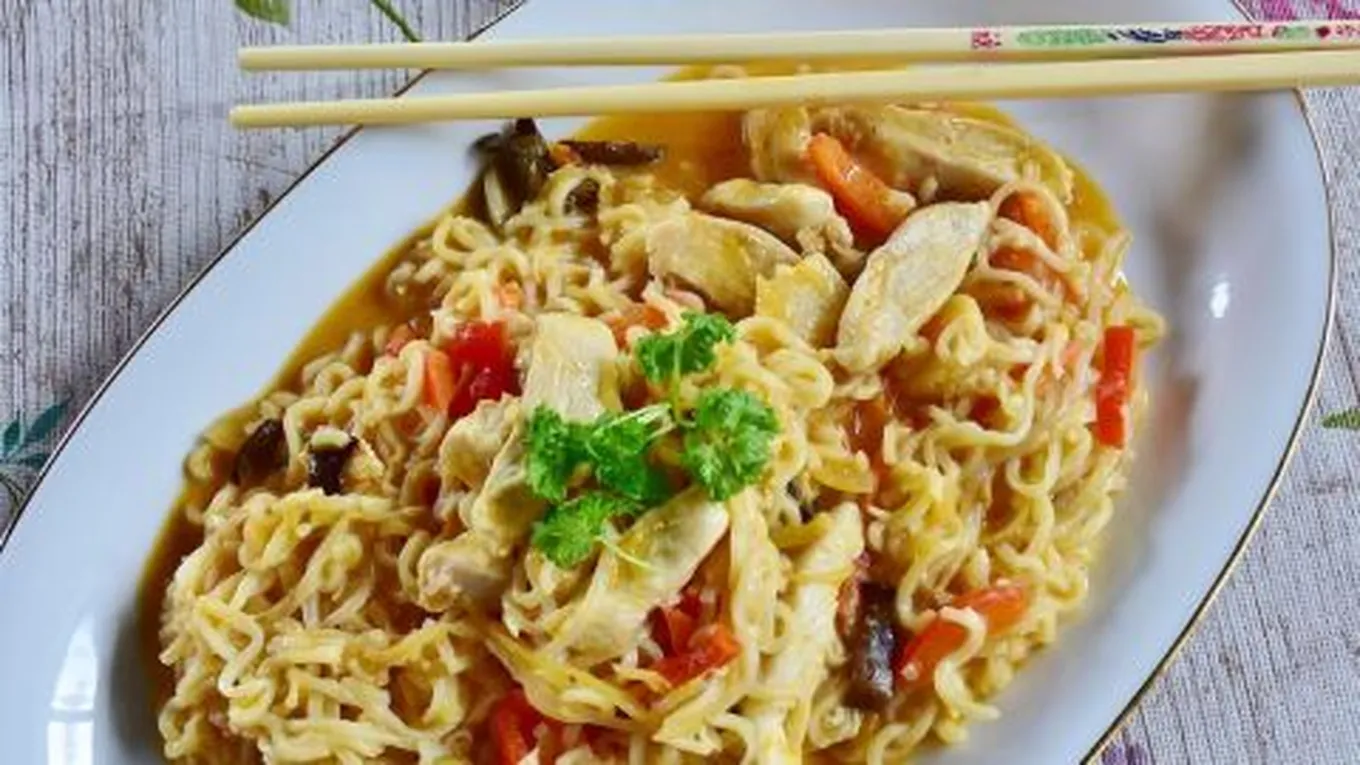 النودلز بالخضار والدجاج