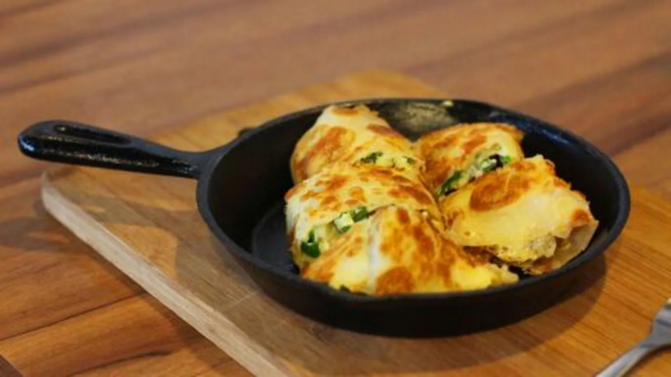 - إضافة خليط العجة إلى المقلاة وطهيه إلى أن يبدأ بالتجمد.