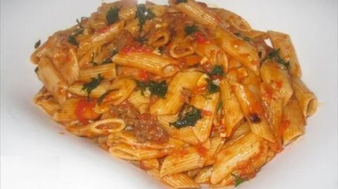 المكرونة بالصلصة واللحم المفروم