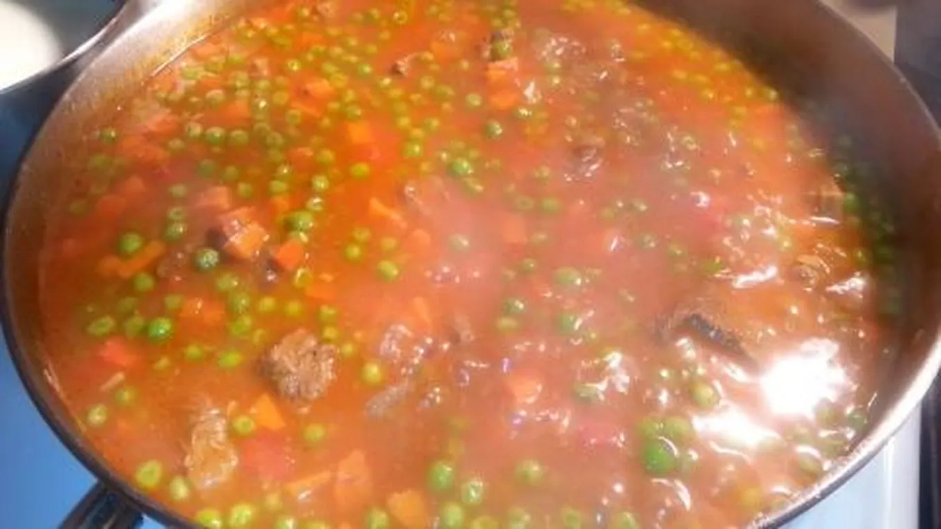 - نصفي البازيلاء والجزر، ونضيفهما إلى القدر، ونحرك المكوّنات مدّة خمس دقائق إضافية، ثمّ نرفع القدر عن النار.