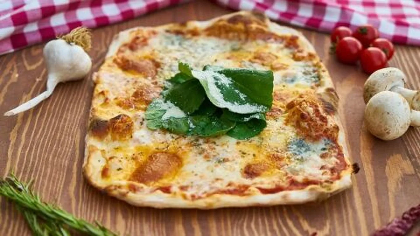 - خبز البيتزا بالفرن لمدة تتراوح ما بين 10-12 دقيقة؛ وذلك حتّى تُصبح ذهبية اللون، ويتحمر الجبن، وبعد ذلك تكون جاهزة للتقديم.