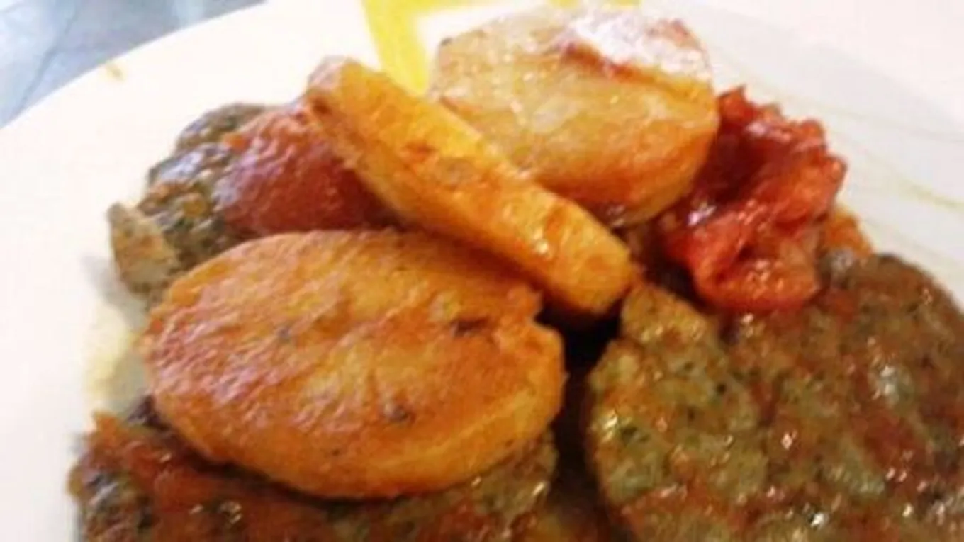 - نوزّع شرائح البطاطس بين كرات اللحم، وبالتساوي، ثم نسكب عليها صلصة الطماطم.