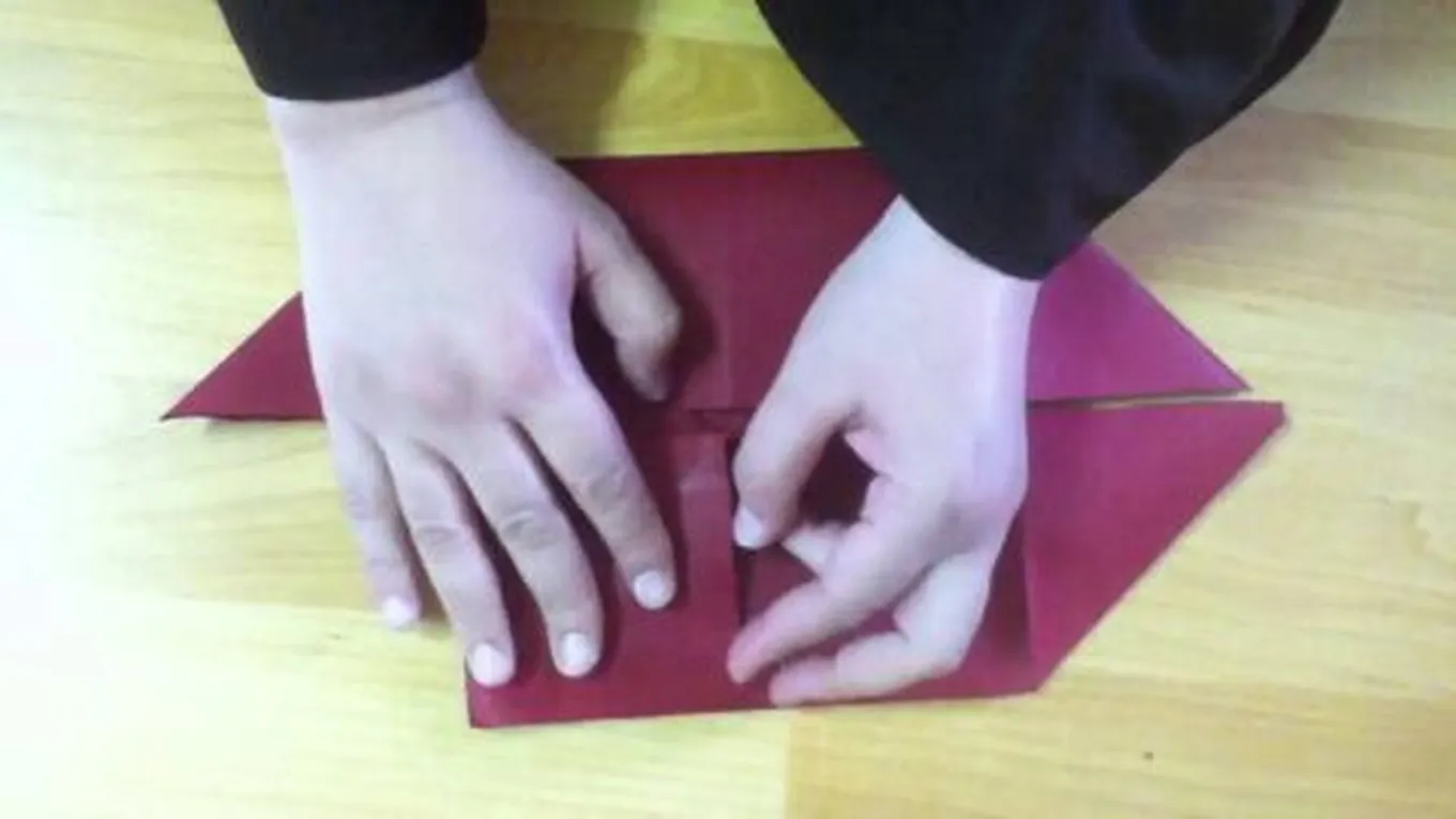 - تثنى الأضلع الأربع للفانوس من ضلع المستطيل الضيق بزاوية مائلة نحو الخارج، مع المحافظة عليها كذلك عند الجمع.