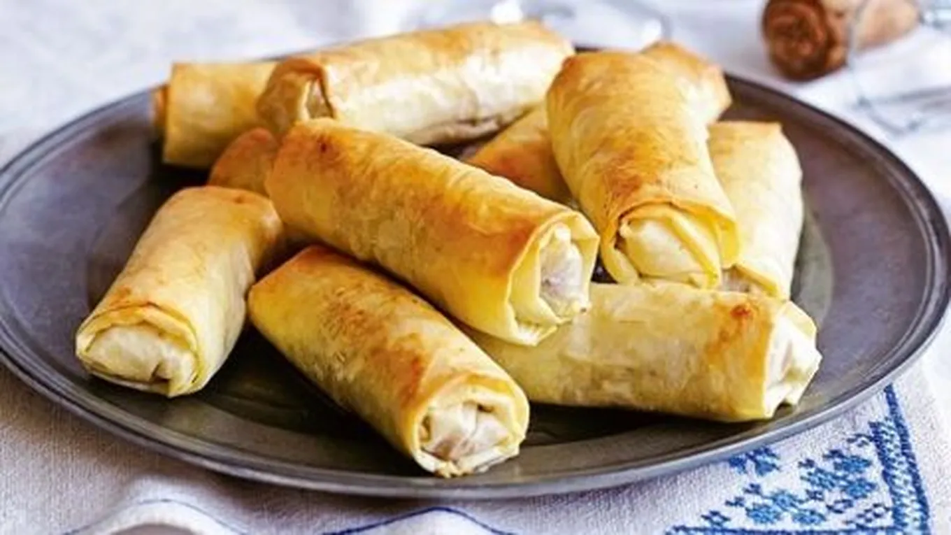 - لفّ دوائر العجين على الحشو على شكل القطايف وقفل جوانبها جيداً.