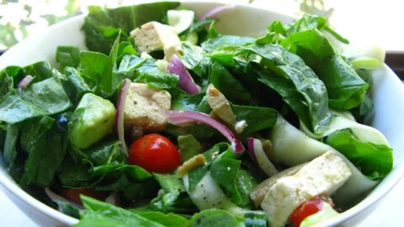 - ضعي السبانخ والبندورة والبصل في وعاء عميق.