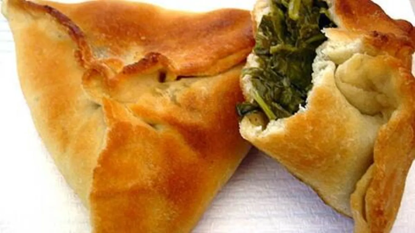 - فرد العجينة قليلًا لتصبح على شكل دائرة قطرها من سبعة إلى ثمانية سنتيمترات، ووضع مقدار ملعقة كبيرة من الحشوة في وسط العجينة وقفلها على شكل مثلث.
