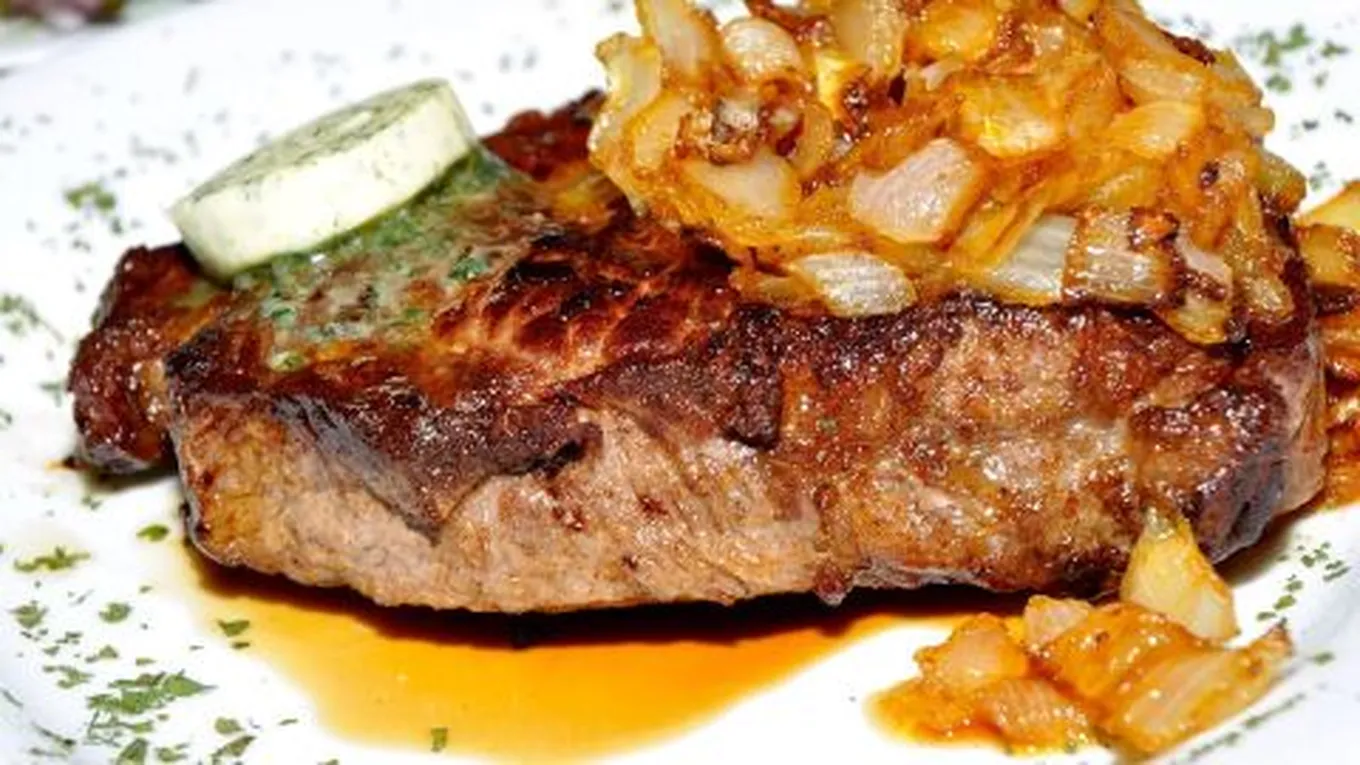 - وضع الستيك في طبق التقديم ثمّ سكب صلصة البصل وتقديمه مع الخضار السوتيه.