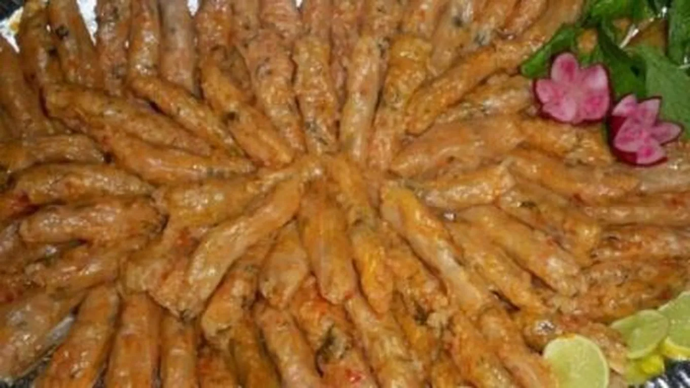 - نسكب الماء المغلي الذي تم تذوب دبس الرمان والملح فيه على الورق، ونضيف القليل من الفلفل الأحمر.