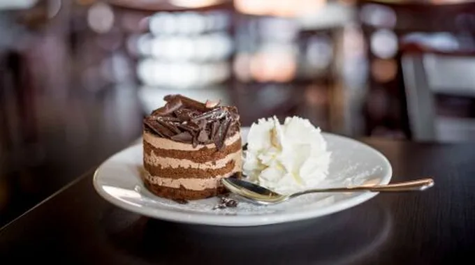 - نرش الكاكاو على الوجه ثمّ نضع قطع الشوكولاتة ونقدمها.