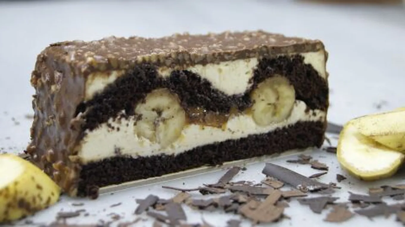 - ترتيب شرائح الموز على سطح الكيك فوق الكريمة ثمّ رشّ المزيد من صلصة التوفي.