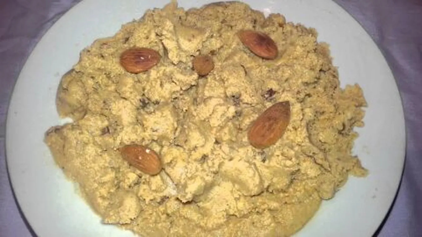 - يُضاف السكر، ويخلطوا معاً جيداً، ثم يُحمص قليلاً مع الدقيق.