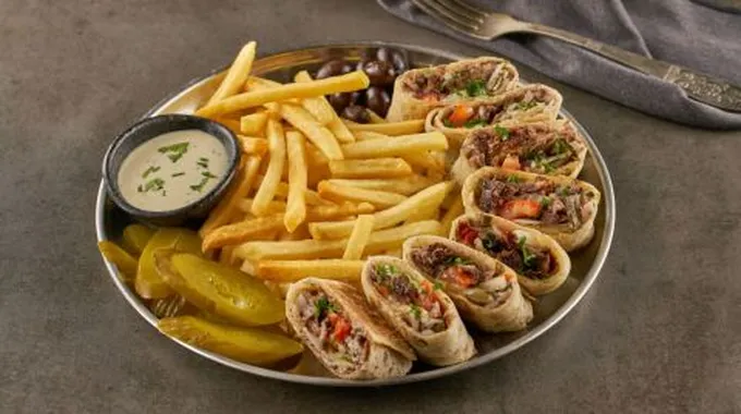 - إحضار الخبز ووضع كمية من الخلطة داخل كل رغيف، مع القليل من دبس الرمان وشرائح المخلل، ولفه جيداً وتسخينه وتقطيعه، ووضعها في طبق إلى جانب طبق من الخضار الطازجة؛ ليكون جاهزاً للتناول.