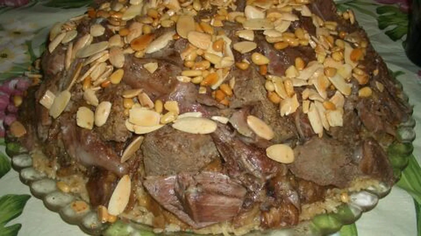 - بعد نضج اللحم يصفى من القدر، ويتم وضعهم في قدر آخر وفوقهم طبقة من البطاطا ثم طبقة من الجزر ثم الأرز و فوقهم توضع مرقة اللحم بمقدار غمرة الأرز.