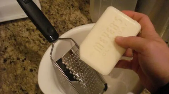 - تبرش قطعة الصابون في وعاء عميق برشاً صغيراً وناعم.