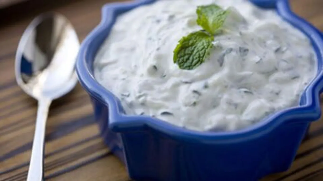 - نُضيف كلاً من الملح، والنعناع الطازج، والنعناع المجفّف إلى اللبن، ونُحركهم.
