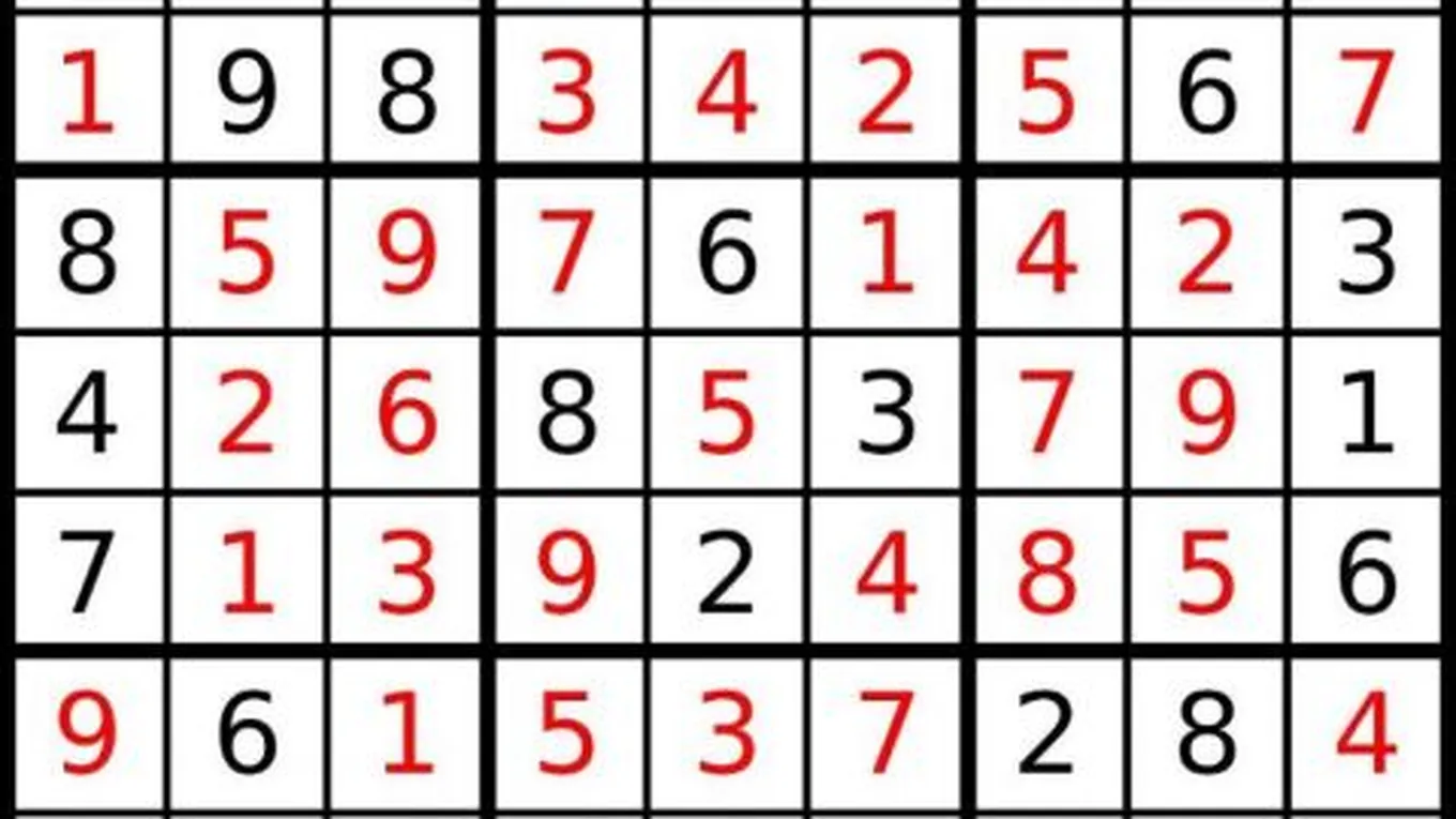 عند النظر إلى المربع الكبير ستلاحظ أن بالداخل أربع خطوط بألوان مختلفة تشكل عند تقاطعها المربعات التسعة الداخلية المتوسّطة الحجم، يجب أن يحتوي كلّ مربع داخلي على المصفوفة كاملة من الرقم واحد إلى الرقم تسعة.