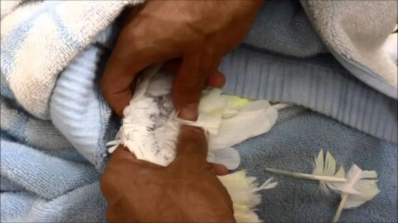يحدد المربي الريش القاسي والمنتوف الذي يعيق عملية الطيران، ويبدأ بنتفه من جذوره بمعدل خمس ريشات في كل مرة، وينتظر حتى يظهر الريش الجديد فيبدأ بنتف الأخريات، أمّا الريش الطويل فيقوم بتقليمه باستخدام مقص حاد، حتى يصبح مساوياً لطول الريش المحيط به.