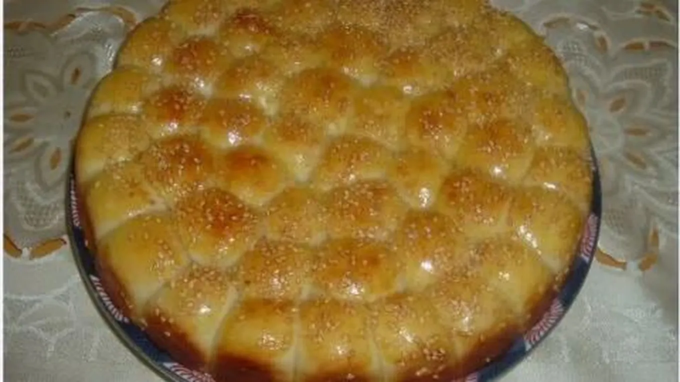 - نرتّب الكرات بجانب بعضها بشكلٍ متلاصق في صينيّة دائريّة، ونزيّنها بالسمسم وحبّة البركة، ونخبزها في فرن محمّى مسبقاً حتى تنضج، ونحمّرها حتى تكتسب لوناً ذهبياً، ثمّ نضع عليها القطر البارد وهي ساخنه ثمّ نقدمها.