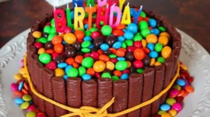 - تزيين القالب بالكميّة المتبقية من الكريمة، وتزيينه بحبوب الشوكولاتة الملوّنة، ويقدّم.