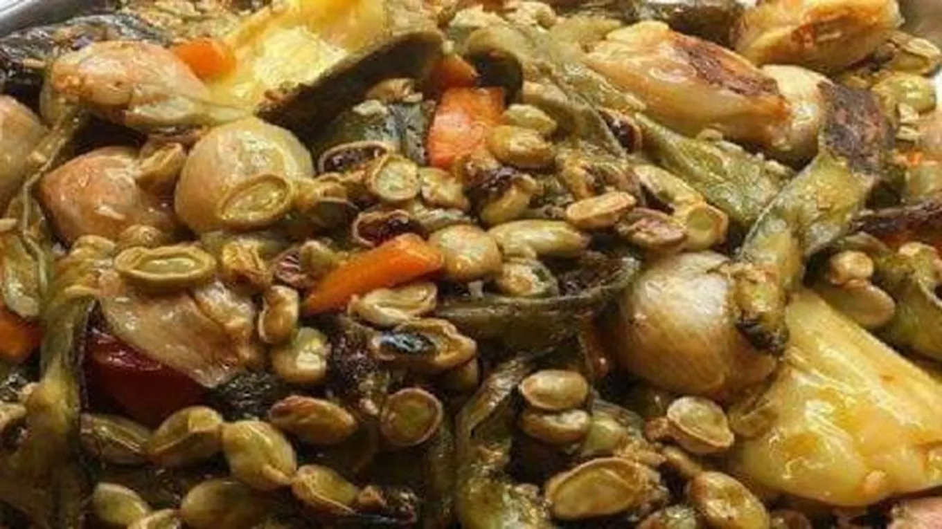 - وضع كمية من الزيت في قدر على نار متوسّطة الحرارة وإضافة الفول ومن ثمَّ تقليبه ثم رص الخضراوات في القدر وتركها تطهو على النار لمدة عشر دقائق.