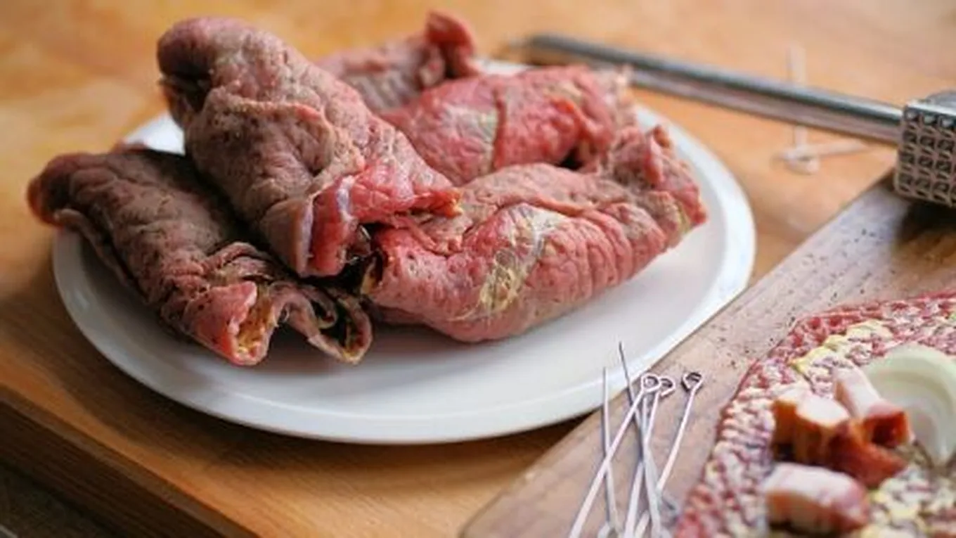 - وضع شرائح البفتيك المحشوة والملفوفة لمدة نصف ساعة في الثلاجة.