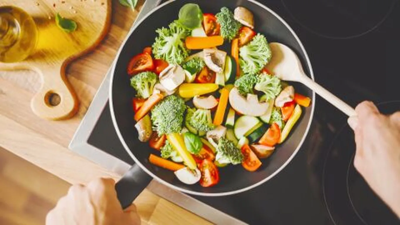 - إضافة كلٍ من: البندورة، الفطر والبروكلي إلى البصل والثوم وتقليب الخضروات بملعقة خشبية حتّى طريانها قليلاً.