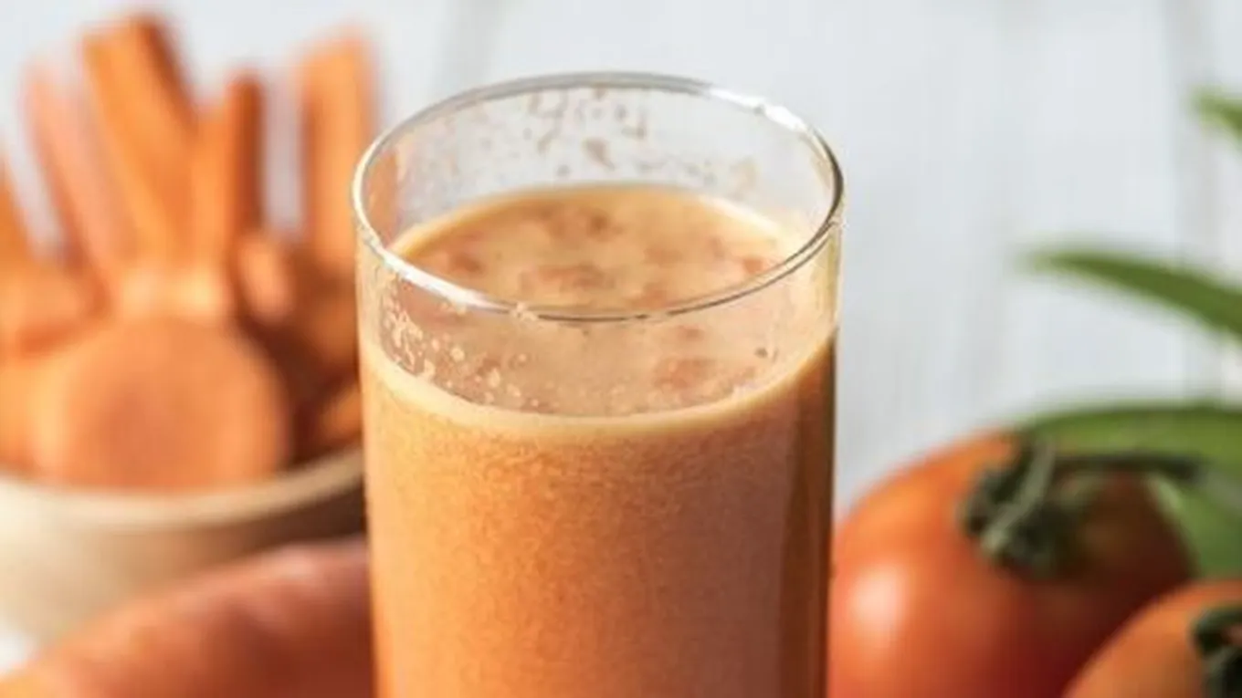 عصر الجزر والبرتقال وطحنهما من خلال محضرة الطعام، وتقديم العصير في أكوابٍ كبيرة.