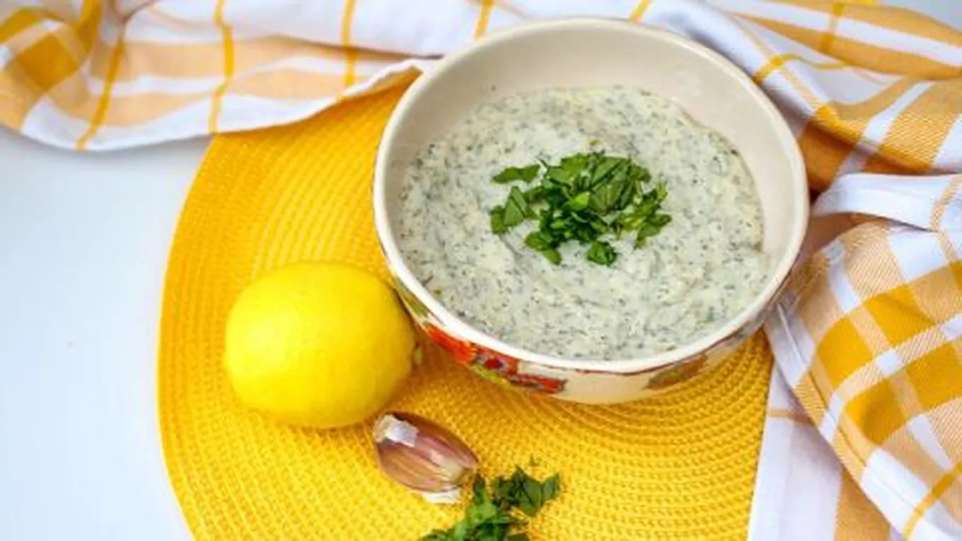 - خلط اللّبن الزبادي، والخيار، ومعجون الثّوم في وعاء.