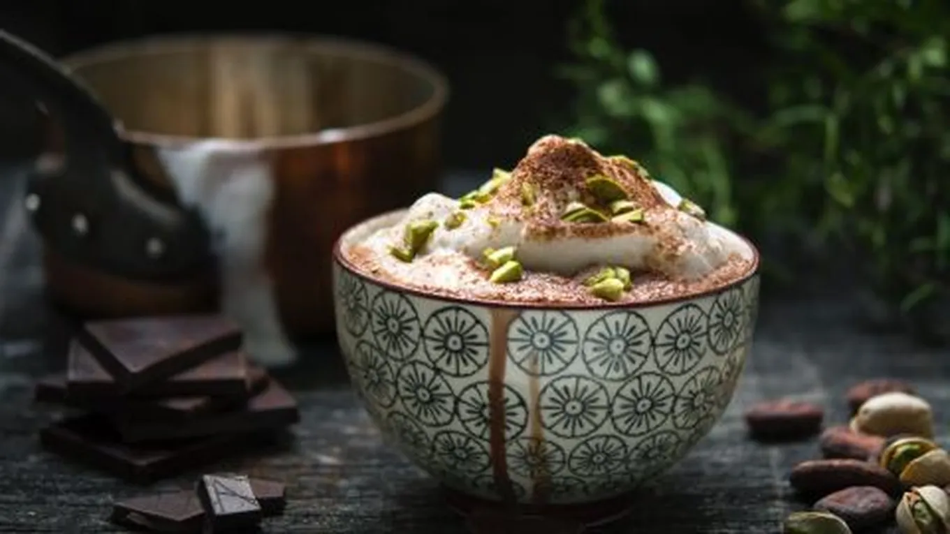 - تزيين الأطباق بالفستق الحلبي المفروم وتقديم المهلبيّة باردة مع القهوة العربية أو أي مشروب ساخن حسب الرغبة.