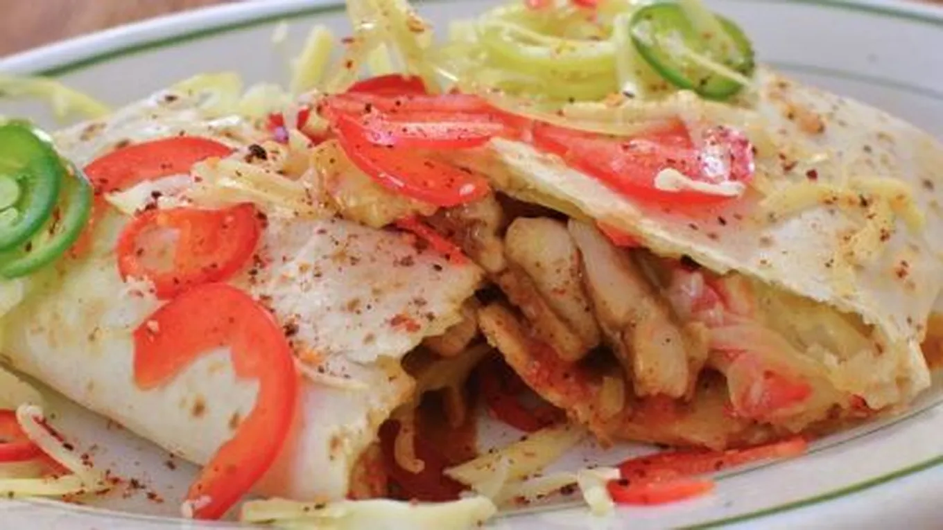 - حشو قطع الدجاج المطبوخة مع البصل والفلفل الرومي داخل خبز التورتيلا وصبّ القليل من الزبادي المخلوط مع البهارات.
