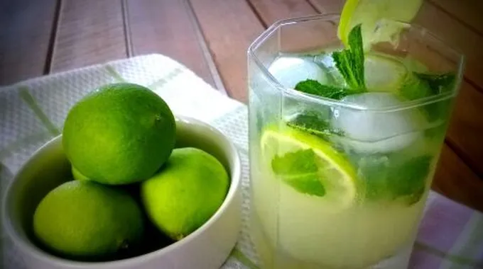 - ضعي أوراق النّعناع في طبقٍ عميق وأضيفي إليه عصير اللّايم وبشوكةٍ اهرسي النّعناع جيداً ثمّ أضيفي ملعقةً من السّكر البنّي واخفقي المكوّنات معاً.