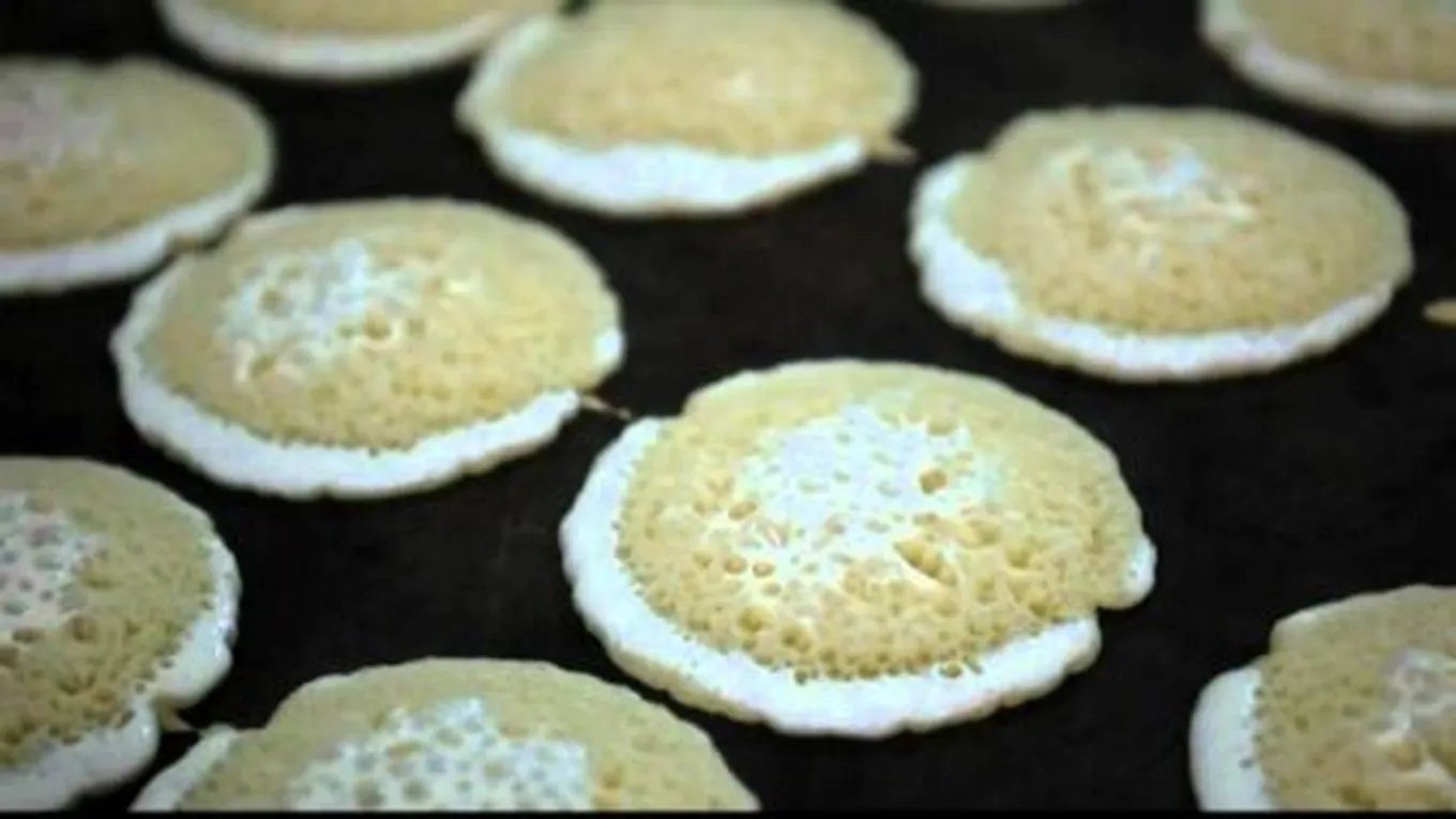 - نضع مقلاةً على نار مرتفعة، ونصبّ ملعقة كبيرة من العجينة في المقلاة، ونحمّر العجينة من جهة واحدة فقط، ولكي نتأكّد من صحّة عمليّة العجن التي قمنا بها فإنّه يظهر على سطح العجينة فقاعات عند وضعها في المقلاة، وهذا يشير إلى أنّها اختمرت جيّدًا.