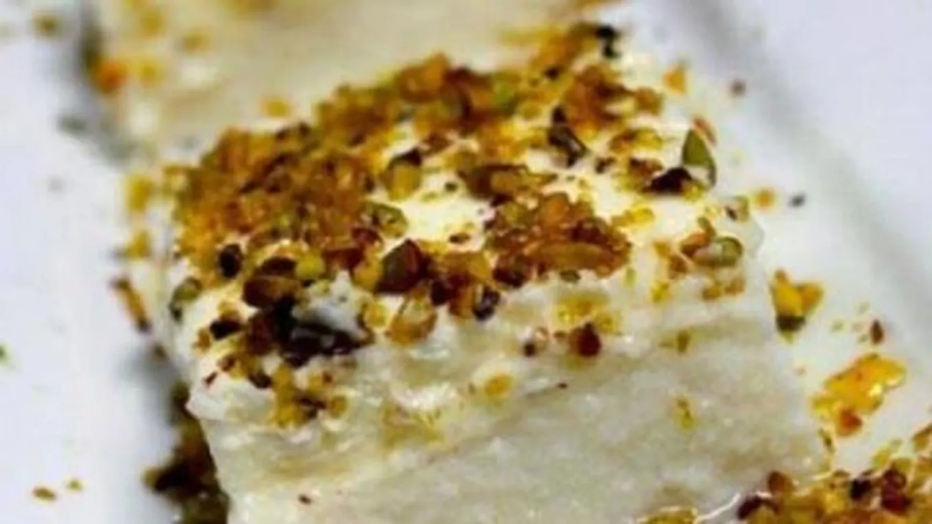 - نقدم حلوى ليالي لبنان باردة بعد أن نزينها بالفستق الحلبي والعسل.