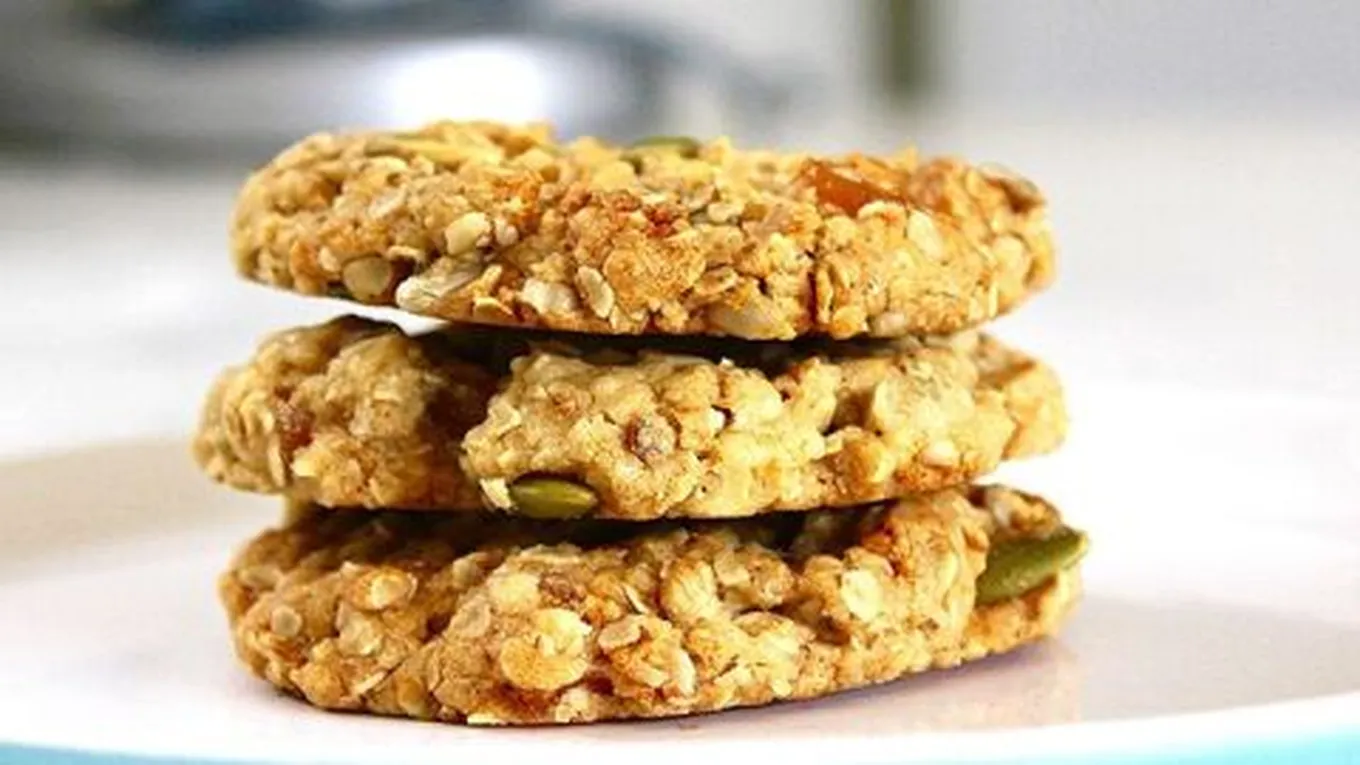 - إزالة المضرب الشبكي وتثبيت مضرب التقليب ثمّ إضافة خليط الشوفان والطحين إلى خليط الزبدة والبيض وتشغيل الخلاط على سرعة متوسطة حتى اختلاط المكوّنات مع بعض ثمّ إضافة الزبيب، والجوز إلى الخليط وتشغيل الخلاط لبضع ثوانٍ حتى تكوين عجينة البسكويت المتماسكة.