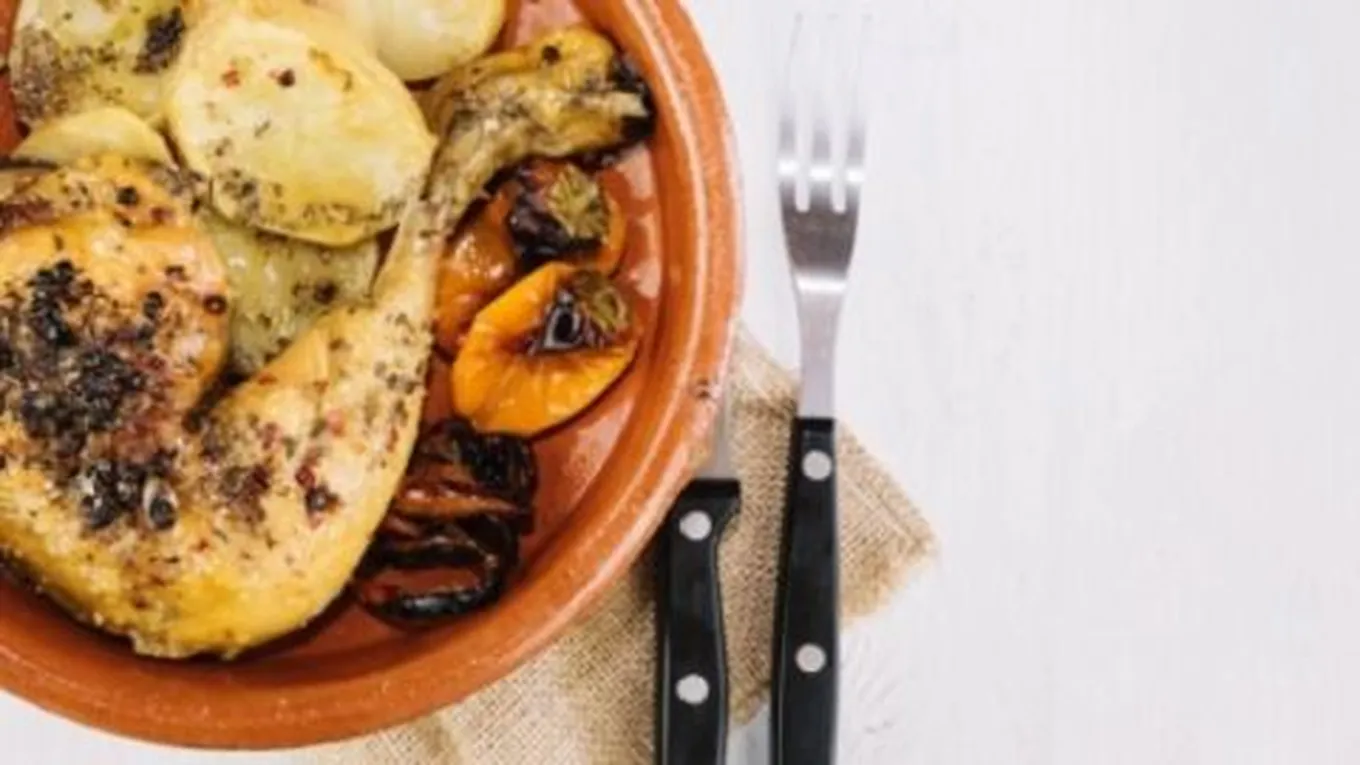 طاجين دجاج مغربي مع البطاطا والزيتون