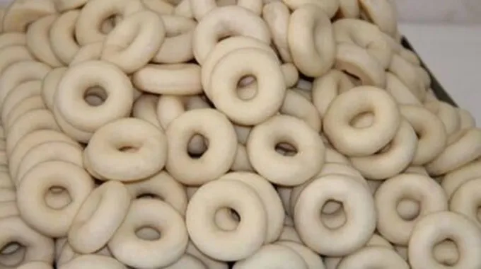 - تشكّل العجينة على شكل مستطيلات، وتوضع بداخلها عجينة اللوز، وتشكّل بشكل الكعك.