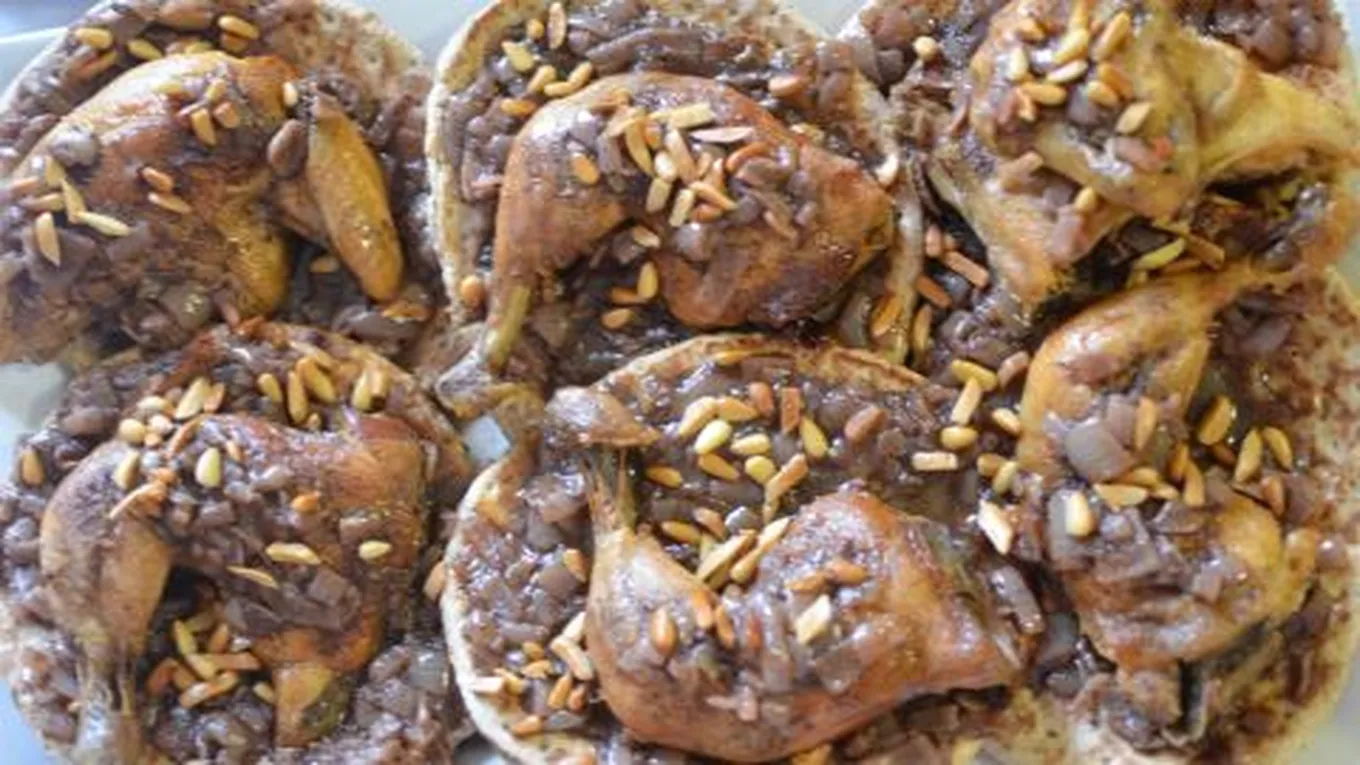 - يحضر خبز الطابون ويدهن بزيت الزيتون ويوضع في صينية وإضافة خليط البصل والسماق إليه، ثم يتم ووضع لوز أو صنوبر، ثم يوضع طبقة أخرى من الخبز ويوضع في الفرن لتحمير وجهه، ويزين بالصنوبر ولوز ويقدم مع شوربة الفريكة.