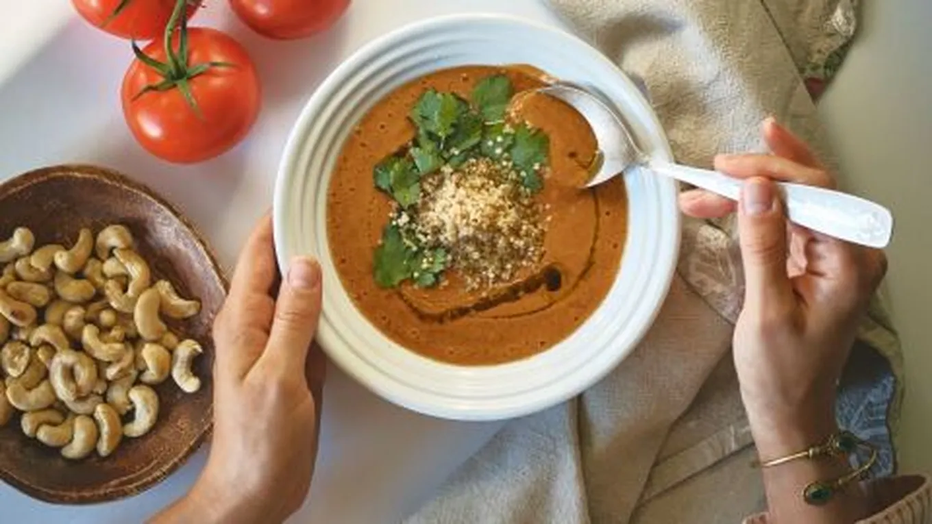 - رفع الشوربة عن النار وطحنها جيداً بالطحانة الكهربائية اليدوية أو في الخلاط الكهربائي حتى الحصول على شوربة ناعمة وملساء.