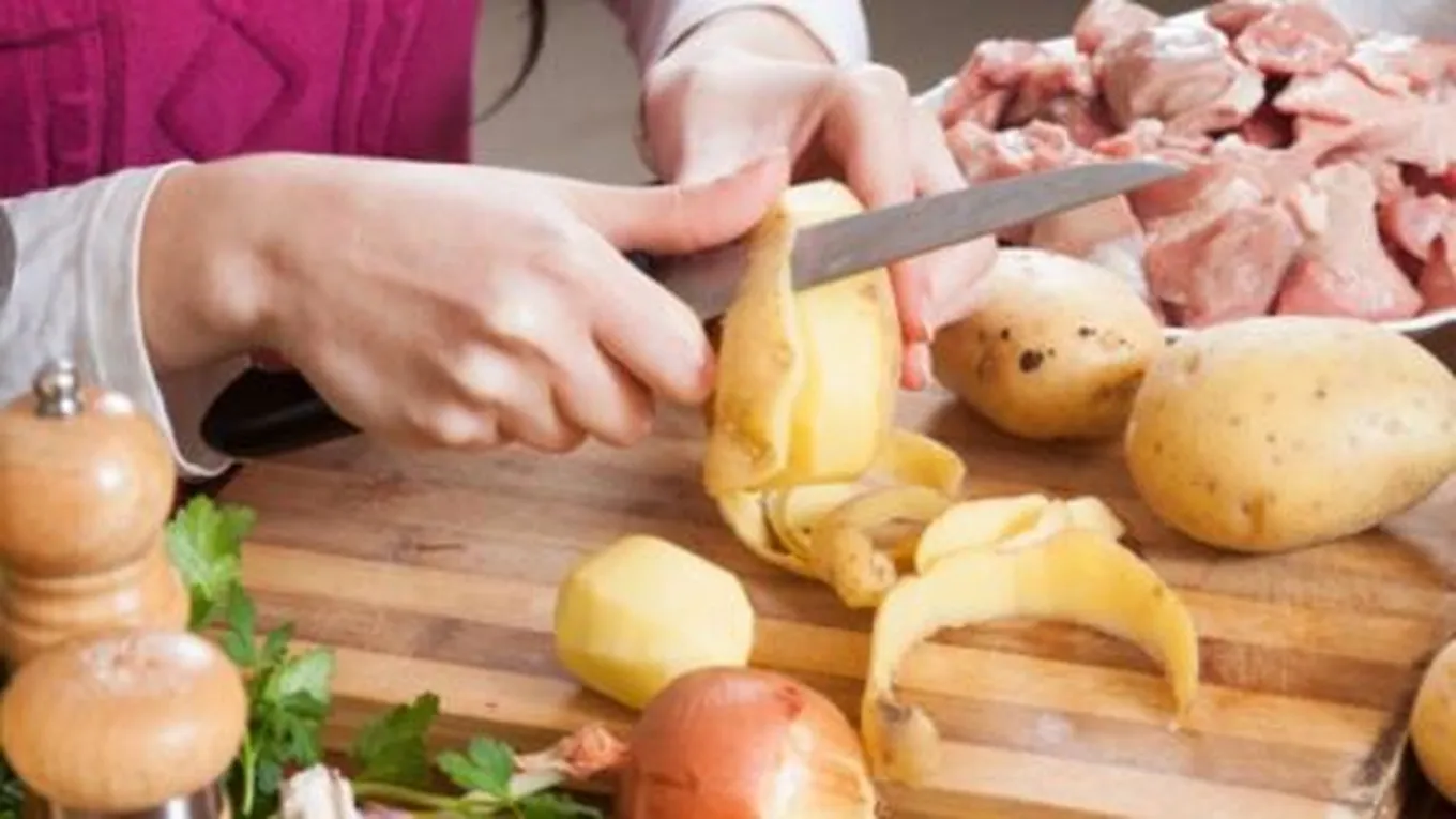 - وضع البطاطا مع الماء في قدر مرفوع على النار وسلقها بدون تقشير أو تقطيع لمنع امتصاصها لكمية كبيرة من الماء ثم تقشيرها وهرسها جيداً.