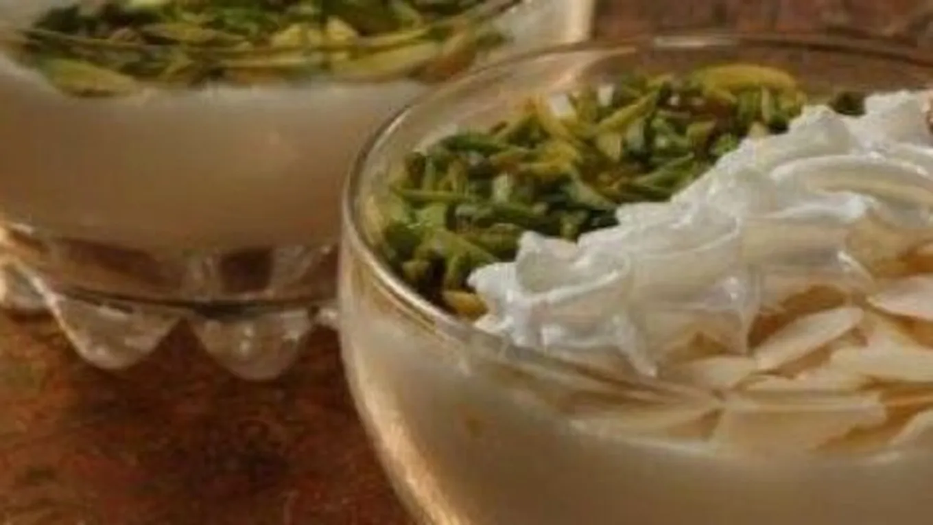 - نزين طبق المهلبية بالفستق المطحون، وجوز الهند المبروش.