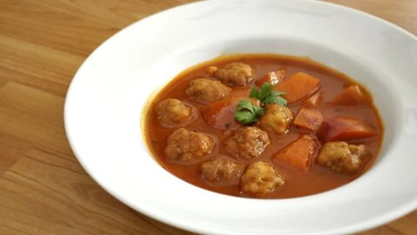 - نقل الخليط إلى طبق التقديم وإضافة كرات اللحم إليه وتزيينه ببعض شرائح البطاطا المقلية، والبقدونس المفروم.