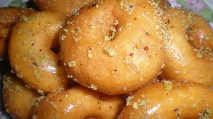 - نضع القطع المقليّة في القطر لفترة قصيرة حتّى تتشرّبه، ثمّ نخرجها لتصبح جاهزةً للتّقديم.
