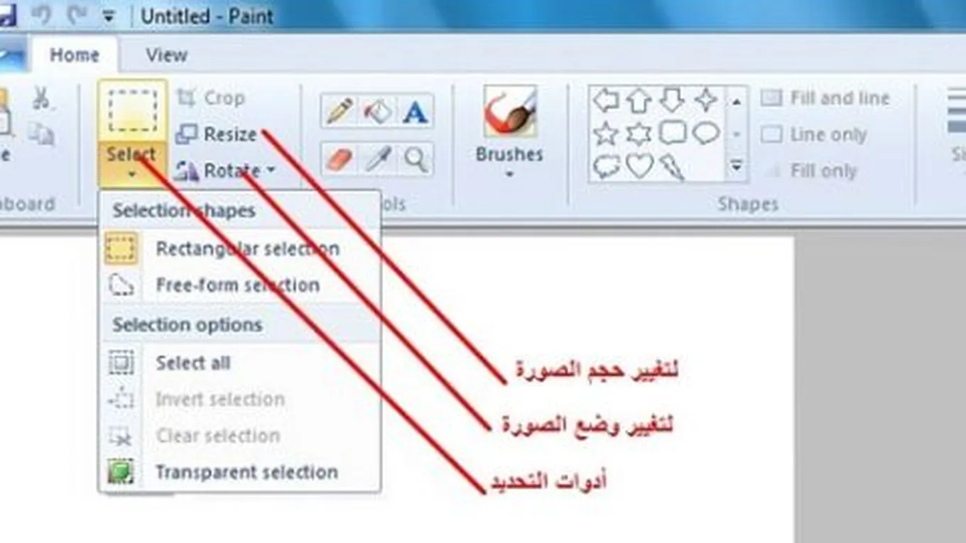 - فإذا أردت أن تأخذ جزء من الصورة على نفس البرنامج الرسّام (paint) فيمكن أن تدخل وتختار خيار التحديد (Select) وتقوم بتحديد المنطقة الموجودة وتأخذ منها نسخ (copy) ومن ثمّ تضعها على صفحة جديدة في الرسام (paint) وتقوم بحفظها على الجهاز .