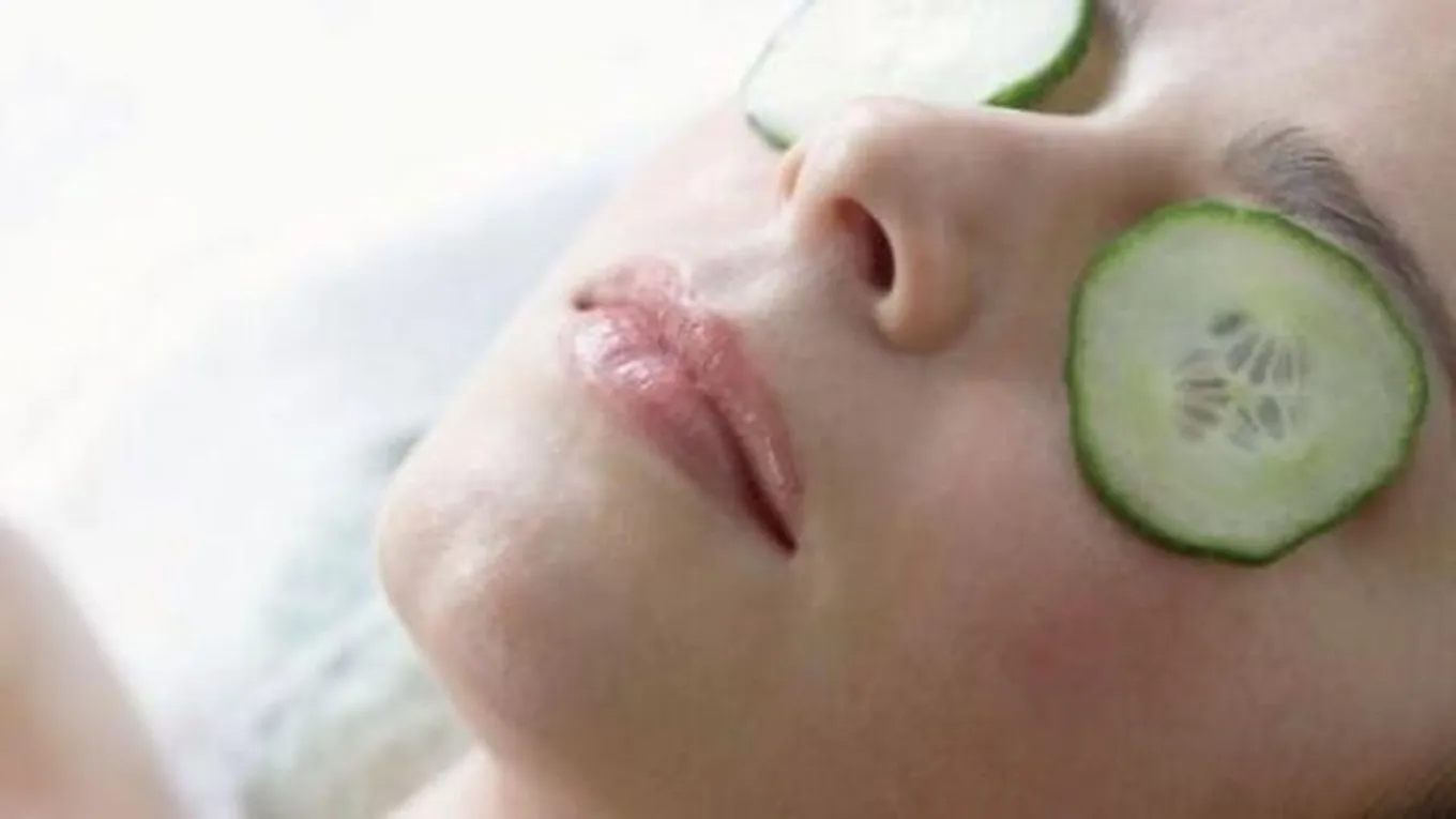 - تُوضع شريحة خيار على كل عين، وتُترك مدة 10-15 دقيقة.