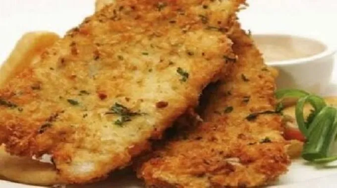 - بعد تتبيل السمك نبدأ بتغميسه بالدقيق جيداً حتى يتغطى بالكامل.