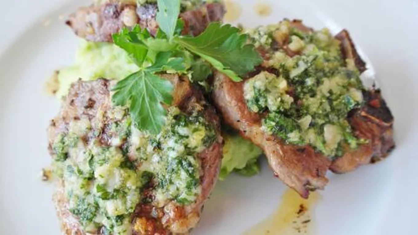 - إزالة الخيط عن اللحم المشوي وتقطيع اللحم بالعرض إلى شرائح وتتبيل اللحم بالملح حسب الرغبة وتقديمه مع صلصة البيستو.