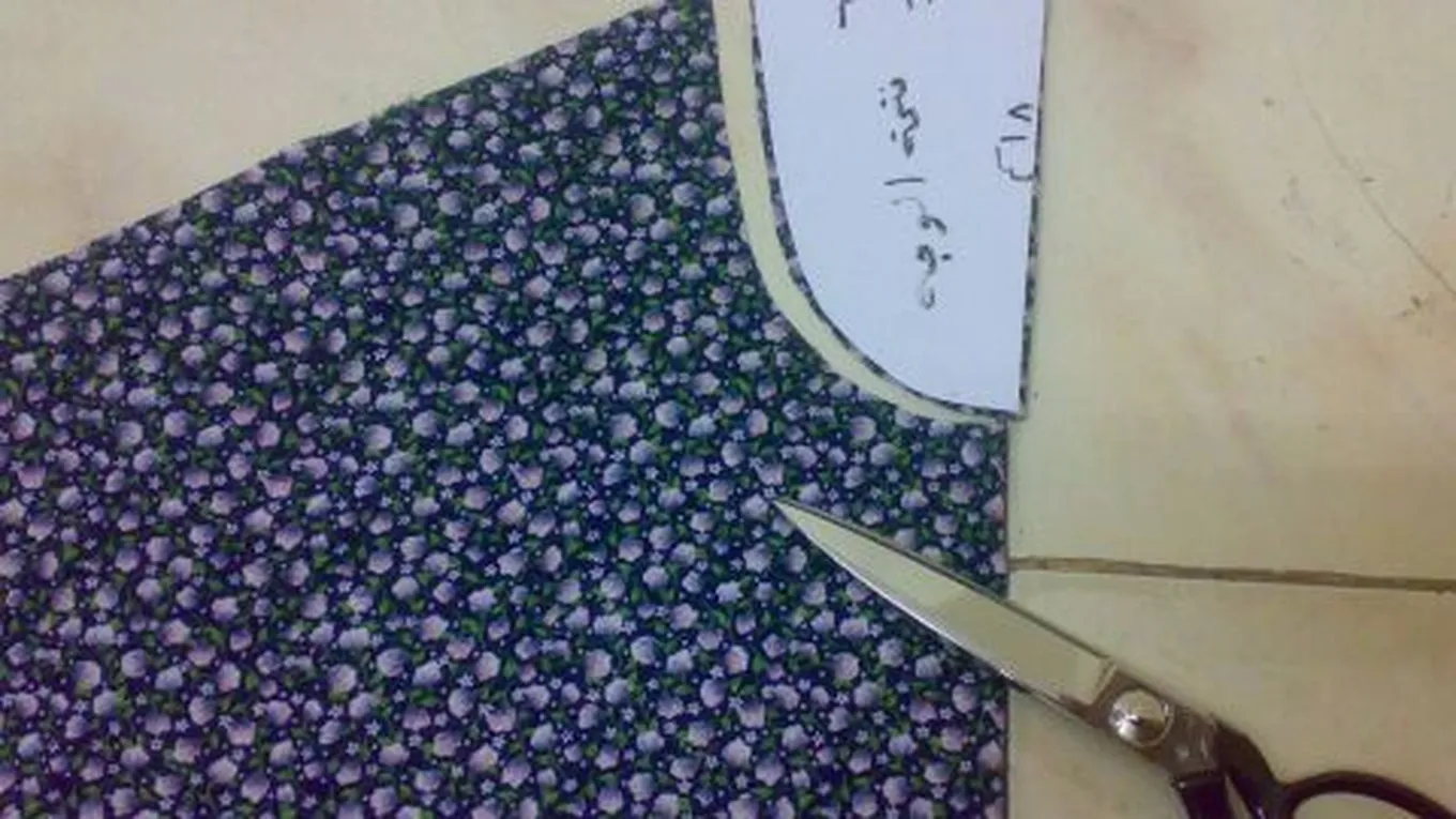 - يثبّت الباترون العلوي للتصميم من أعلى منطقة في قطعة القماش، ويحدّد من جميع جوانبه على قطعة القماش، ويفضّل استخدام قطعة صابون مدببة الطرف لتحديد الباترون على قطعة القماش، لسهولة مسحها عن قطعة القماش.