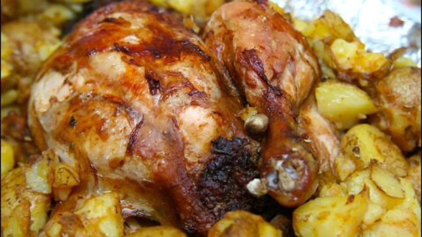 - عندما تقترب الدجاجة من النضج، نرفع ورق القصدير ونعيد الصينية إلى الفرن حتى تتحمّر.